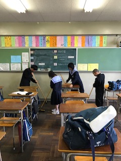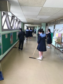 毎月「美化向上週間」を設定して、校内の美化向上に努めています。日頃の清掃よりも丁寧に、行き届かないところも念入りにきれいにしています。