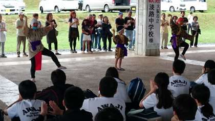 まず始めに、歓迎の舞をしていただきました。本校の生徒も、飛び入りで参加させていただき、おおいに盛り上がりました。
