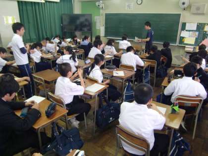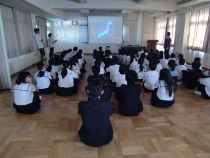 1時限目の始めに教頭先生から、地震や津波等の災害に対する心構えなどについてお話がありました。その後、映像資料で防災・減災について学習しました。