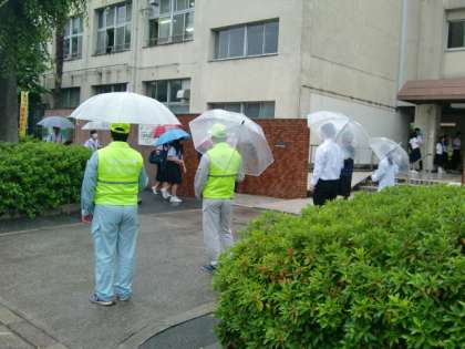 今日も朝早くから、地域の方々に学校周辺の交差点等に立っていただき、生徒たちの登校を見守っていただきました。また、校門前でも、ひとりひとりの生徒に声をかけていただきました。