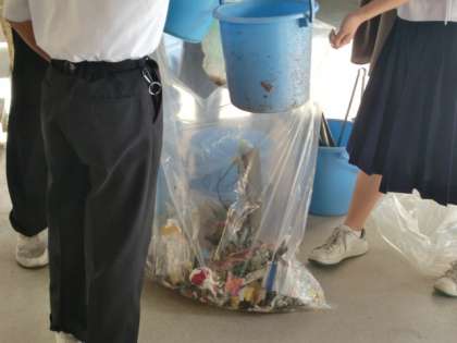 多くのごみを片付けてくれて、学校周りもきれいになりました。ありがとうございました。