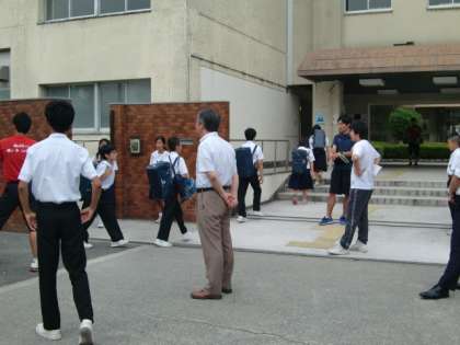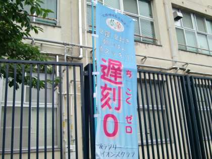 毎月20日は遅刻0(ゼロ)デーです。今月も「遅刻0(ゼロ)」ののぼり旗を増やして、登校する生徒に「遅刻0(ゼロ)」を呼びかけました。