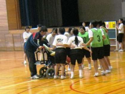最後には、男女の優勝チームと教員チームとの試合。校長先生も飛び入り参加し、シュートを放ちましたが・・・。しかし、生徒たちは教員のプレーにも応援するなど楽しいひと時を過ごしました。