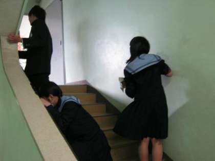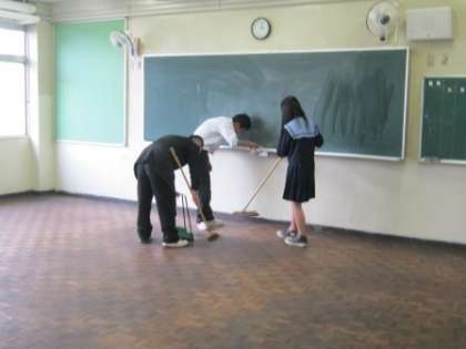 これまで使ってきた教室の掲示物を外し、壁の汚れも磨いて落としていきました。広い校舎ですので、すべての場所を仕上げるには、十分な時間はありませんでしたが、感謝の気持ちや、後輩へ託す思いなどを込めて、活動したことでしょう。一生懸命に作業している姿が印象的でした。