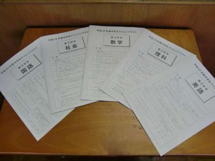 教科は国語・社会・数学・理科・英語の5教科です。少し緊張していたようですが、今日までの自分の努力を信じ最後まで頑張っていました。
