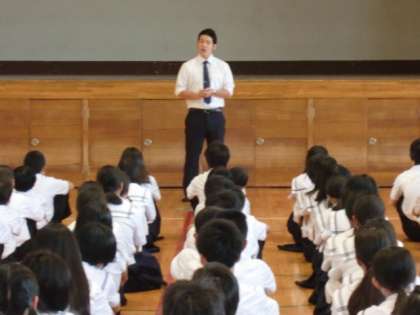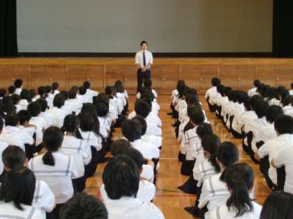 教育実習の先生から、生徒の皆さんに「充実した3週間でした。今の淡路中学校の生徒は、何事においてもよく頑張っている。これからも、良い伝統を引き継いでいってほしい。」とお話をいただきました。