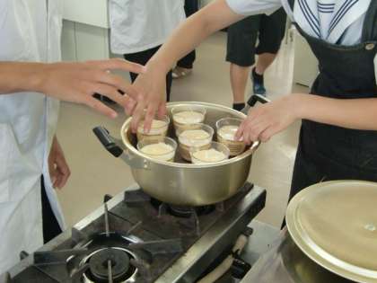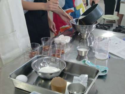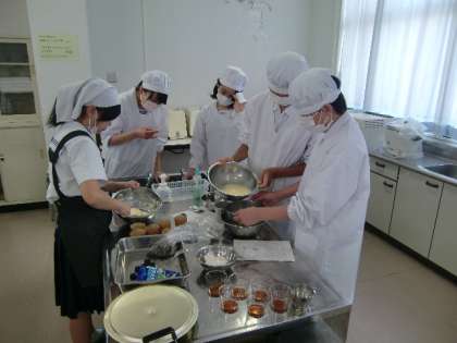 和気あいあいとした中でも、火を使うときや、細かい作業のときは緊張感を持って調理していました。プリンは冷蔵庫で冷やし、マフィンはオーブンで焼いています。出来上がりは給食の時間です。待ち遠しいですね。