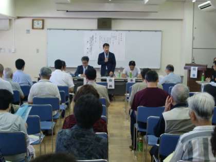 第1部総会では会長のあいさつ、来賓あいさつのあと、活動報告と方針などが話あわれました。