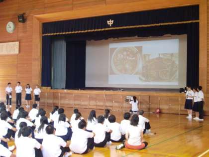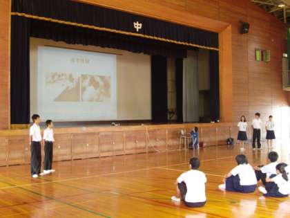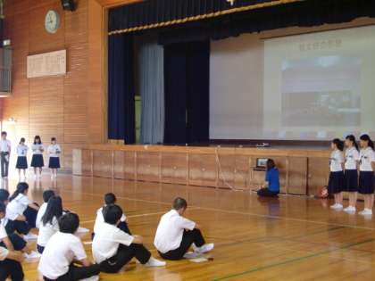 その後、サークル活動、部活動代表、各学年から、今学期取り組んできたさまざまな活動について発表がありました。発表者の皆さんは、緊張しながらも堂々と自分たちの取り組んできた活動について発表しました。それぞれが、それぞれの特色を活かした素晴らしい発表でした。また、聴いている生徒たちの姿勢もとても素晴らしかったです。