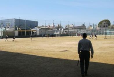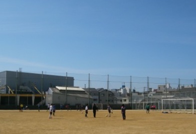 グラウンドでは、複数のクラブで声をかけあって熱心に活動しています。