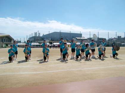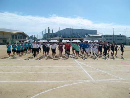 (上から 陸上部 吹奏楽部 全部活動入場)