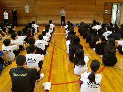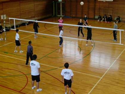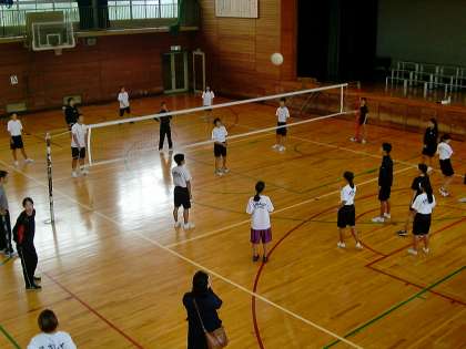 始めにPTA会長様からご挨拶をいただきました。その後、9時30分から体育館で生徒と保護者の皆さんでソフトバレーを楽しみ、10時30分からは、体育館やグラウンドでバレーボール、バスケットボール、テニス、ソフトボールを保護者の方々にも入っていただき交流しました。