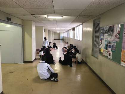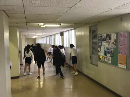今日は、陸上部の活動を行いました。残念ながら雨だったので、校舎内での活動となりましたが、元気いっぱいに頑張っていました。