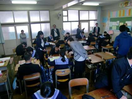 今日のピアサポートの取り組みを、宮崎県の中学校の先生方が視察に来られました。2・3時間目に授業を参観され、4時間目に参観した授業についての意見交換や、本校のピアサポートの取り組みについての質問がありました。