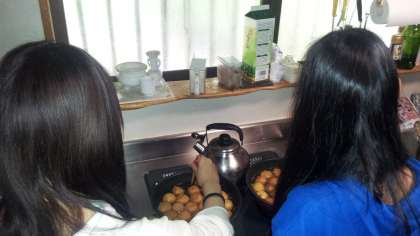 民泊先のご家庭で沖縄料理を教えてもらいました。外はカリッと中はフワッ、おいしかったです (^^)