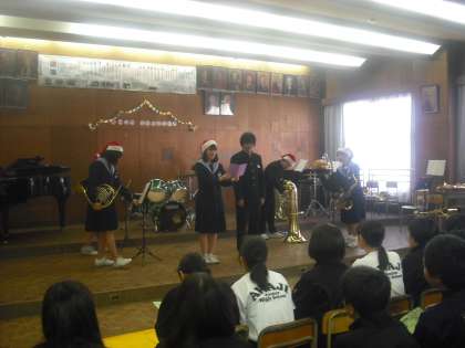 クリスマス当日の今日、素敵な午後のひとときをみんなで楽しむことができました。吹奏楽部の皆さん、副校長先生ありがとうございました。