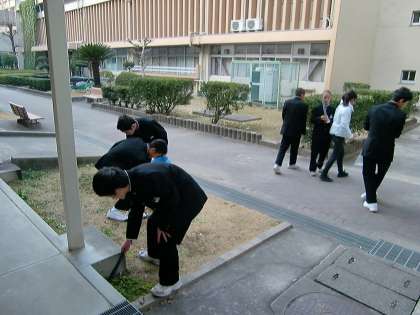 8時に集合して、生徒会、学級代表、美化委員、また、多くの有志の皆さんが、学校内の清掃や学校周りの清掃をしてくれました。