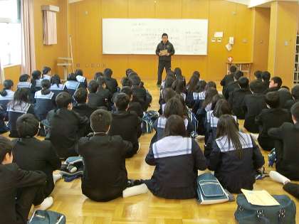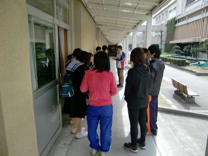 始めに、学年主任の先生と進路指導主事の先生から、出願時の注意点について話があり、その後、出願高校別に分かれて願書を提出しに出発しました。