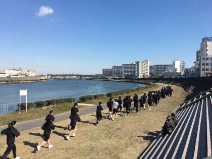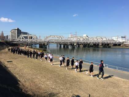 明日のマラソン大会に向けて、2年生は2時限目に、1年生は4時限目に試走を行いました。強い風が吹き寒いなか、生徒たちは気合十分に走りました。今日は男女ともに2kmを走りました。