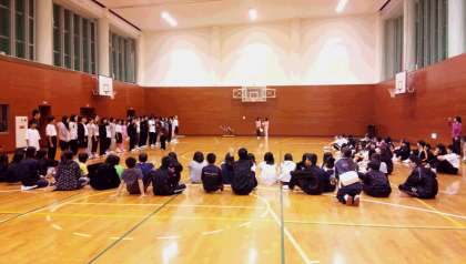 クイズやじゃんけん大会・校歌合戦など、クラス対抗のゲームで大いにもりあがりました。先生やクラスメイトとの絆が深まったひとときでした。