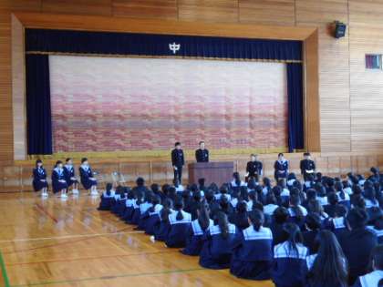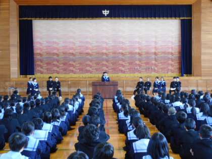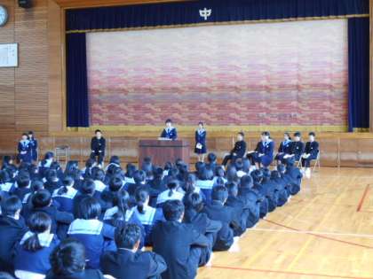 その後、会長候補1名、副会長候補2名、執行委員候補3名より「昼休みの校内放送(昼ラジ)の充実」、「生徒会新聞の充実」や「キャップルタブキャンペーンの活性化」、「ベルマークキャンペーンの活性化」など、学校生活全般について、抱負や決意を述べてくれました。