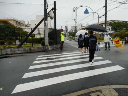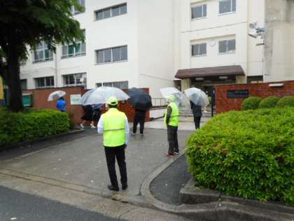 今月も、雨の中朝早くから、地域の方々に学校周辺の交差点等に立っていただき、生徒たちの登校を見守っていただきました。また、校門前でも、ひとりひとりの生徒に声をかけていただきました。