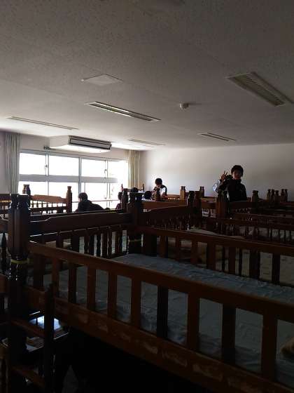 昼食が終わり日高少年自然の家に入館しました。自分のベッドの位置を確認した後、体育室で入館式を行います。