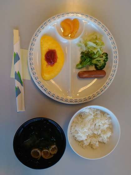 6時に起床しシーツや枕カバーを返却しました。その後、朝のつどいを行い朝食をいただきました。