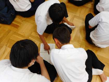 明日より実施する修学旅行にむけて、学年集会を行いました。