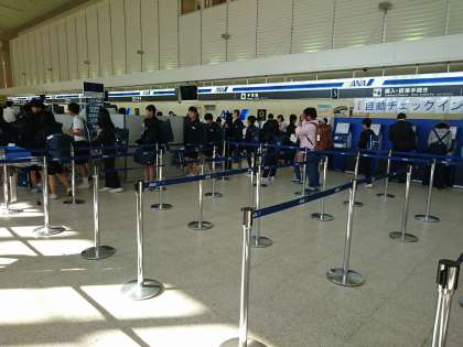 伊丹空港ロビーに到着し各自荷物を預け、出発ロビーに移動しますした。