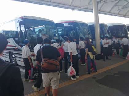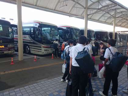 淡路中学校にむけて出発です。