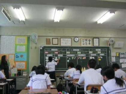 1人づつカード(絵札)を引きながら回答する流れで授業がすすみ、楽しく学習することができました。