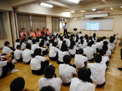【救護班】救護室(福祉避難室)の設置。その後、応急救護体験。