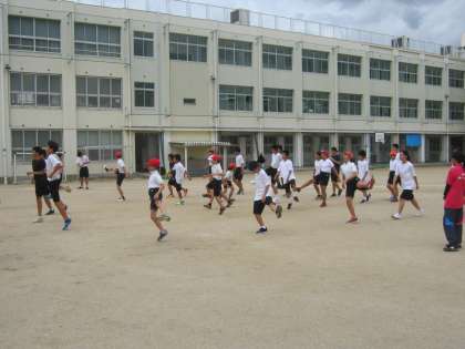 続いて、各部活動の部長より自己紹介と部活紹介を行った後、先生から諸注意があり活動を開始しました。1時間という短い時間でしたが、みんなで元気に声をかけあい気持ちの良い汗を流しました。