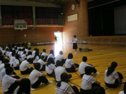 『今年度1回目の仲間の日が6月19日に行われました。発表者は、各学年・サークル、そして私たち7者リーダー会です。今回は『国境を超えて手をつなごう』をテーマとしました。これは『淡路中学校の中にはいろいろな分け隔てをつくらない』というメッセージです。長時間にわたり、みんなが各発表を真剣に聴いてくれる姿を見て、今回のテーマがみんなの心に届いたと感じています。これからもより過ごしやすい淡路中にしていきましょう』