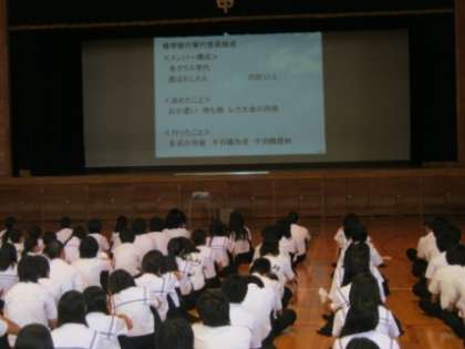 全生徒が集まってお互いのようすを伝えあう中、頑張っている点や克服すべき課題を確認できた会になりました。苦しいこと・楽しいこと、学校生活の中で、いろんなできごとがありますが、一緒になって乗り越えられる仲間の絆を深めていく取り組みになったことと思います。(以下、取り組みの中心を担った生徒のみなさんからのメッセージです)