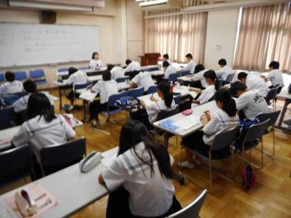多くの生徒が自主的に参加し、宿題や補習授業を受けるなど、各自が自分に合った学習に取り組んでいます。生徒たちは、私語をすることなく真剣に学習していました。
