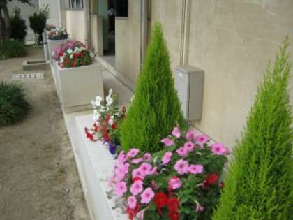 夏本番を前に、グラウンド前のプランターの花を植え替えていただきました。