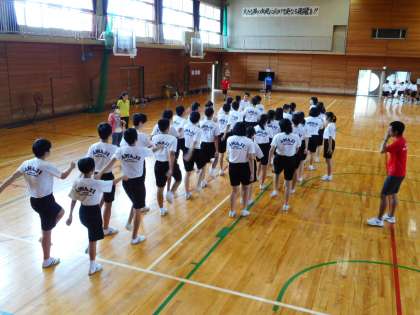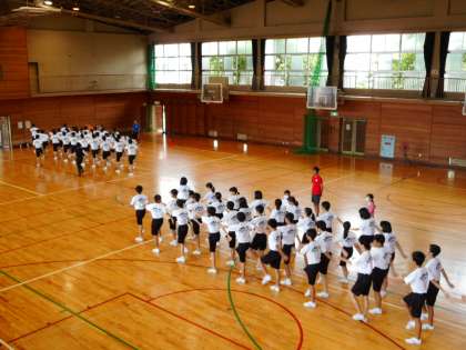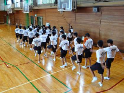 まずは行進の練習です。縦、横の列をしっかりあわせるようにクラス一丸となって練習に取り組んでいます。