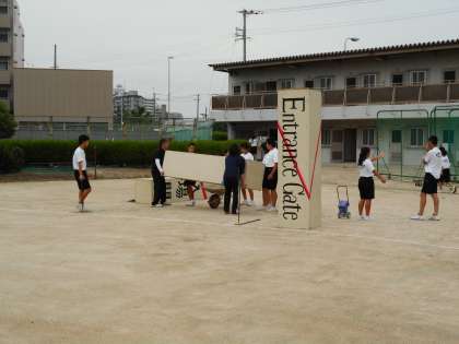 生徒たちは協力して、体育大会の準備を自主的、また協力しててきぱきと行動し、あっという間に完成しました。