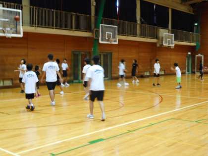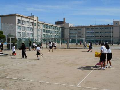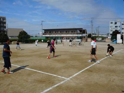その後、10時30分から、体育館やグランドでバレーボール、バスケットボール、フットサル、テニス、ソフトボールを保護者の方々にも入っていただきゲーム形式で交流しました。