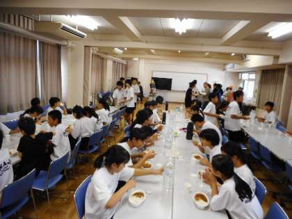 スポーツ交流会が終わった後、保護者の皆さんがつくってくださったカレーライスをいただきました。
