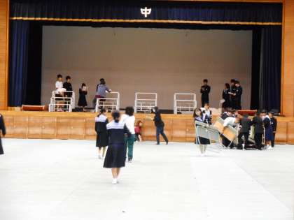1年生は体育館の設営とステージ・舞台の清掃を、2年生は正門から玄関ホール・校舎外周などの清掃をしてくれました。