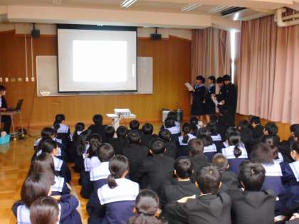 始めに、保健委員より、「事前アンケート」の集計結果の報告がありました。その後、校医の先生にご講演をしていただきました。