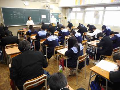初日の今日は、1時限目 英語、2時限目 理科、3時限目 社会、4時限目 音楽(1・2年)です。生徒たちは、最後まであきらめずに集中して問題を解いていました。