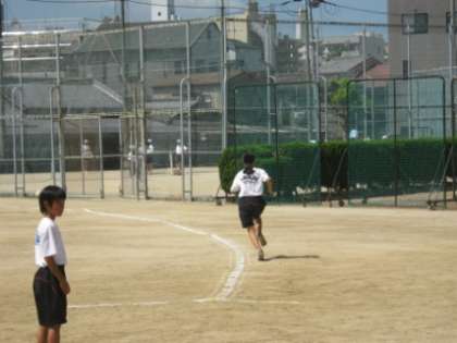 120mダッシュを繰り返し行うのですが、けっこうキツい練習です。こまめな給水と日陰での休息をとりながら、自身のスタミナアップに取り組んでいました。夏休みに開催される大会・記録会で、ぜひ自己ベスト更新を達成してくださいね。