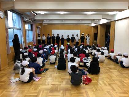 期末テスト後の午後、西淡路小学校5年生の皆さんが中学校の部活動を体験しました。「中学生が部活動で学んだことを発表する」「小学生に部活動の楽しさや大切さを体験してもらう」 ことを目的としています。