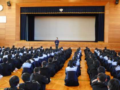 始業式では厳粛な雰囲気のなか、顔をしっかりとあげ、先生方の話を集中して聞いていました。