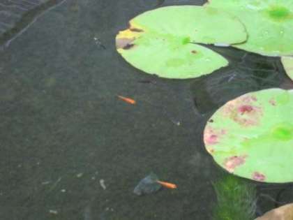 西淡路小学校で孵化(ふか)したコイの稚魚を分けていただきました。