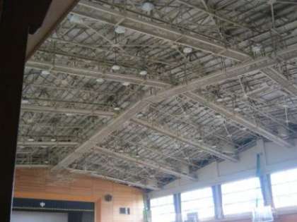 体育館の天井部分の工事がもうすぐ終了しそうです。